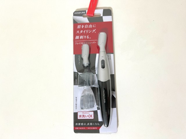 続いてコイズミの「フェイス&マユシェーバー(KMC-0650-K)」。ネットでの市場価格は1600円~2000円だった。福袋価格は税込1000円なので、50%以上のお得度だ。実際に眉毛を整えてみたが、2種類のコーム(約5mm/8mm)で長さ調節ができるので便利。