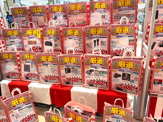 12月20日、私(耕平)はジョーシンの店舗を訪れた。店頭には今年も大量の福袋がズラリと並んでいる。