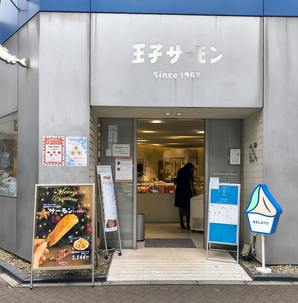 ふと入口の立て看板を見ると、これはチキンか? 王子サーモンでもチキンを販売するんだな。……と思いきや、シャケだったッ!
