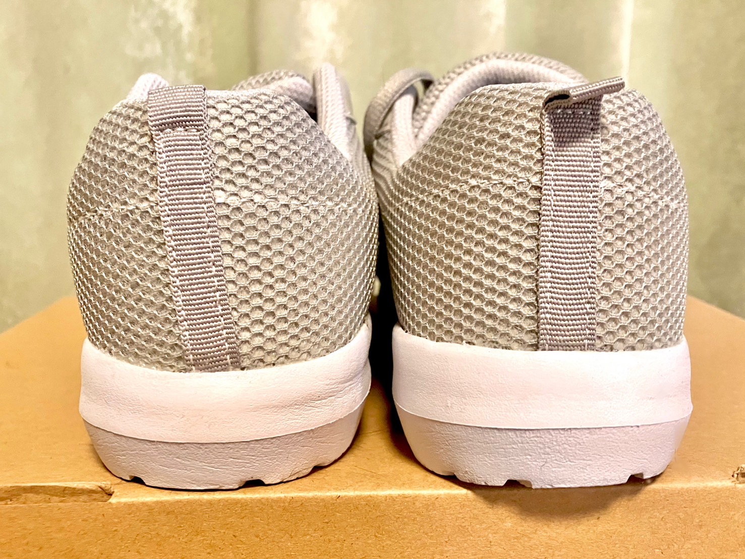 表面がメッシュになっていて、めちゃくちゃ通気性がよさそう。試し履きをしてみたところ、見た目通りかなり軽くて歩きやすかった。