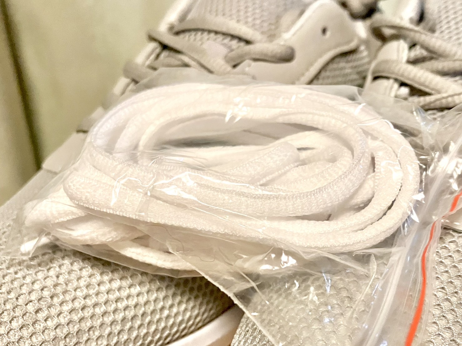 セットされているのはグレーの靴紐だったけど、ホワイトの靴紐も付属していた。新しく靴紐を買わなくてもカラーチェンジができるのは嬉しい。