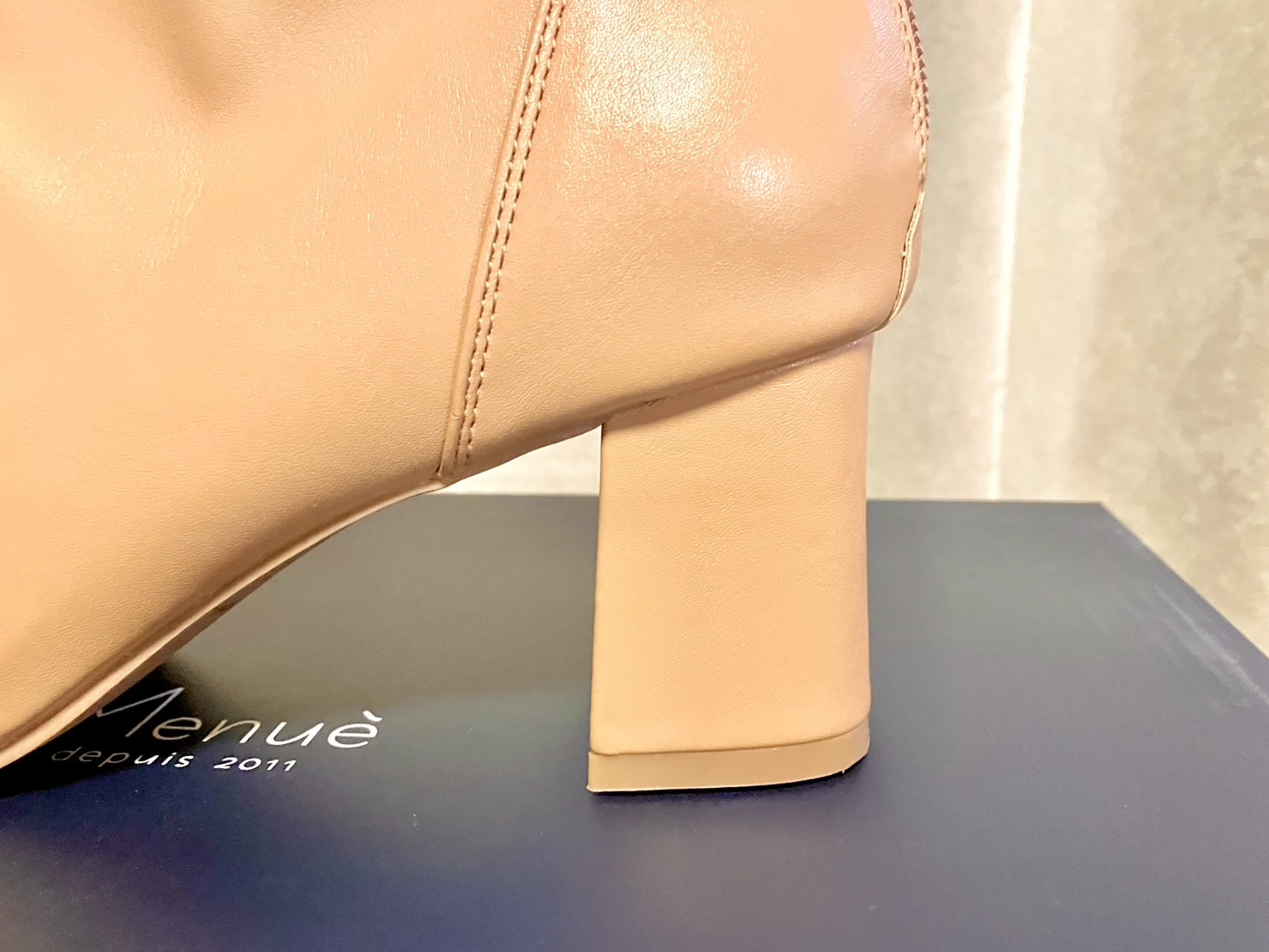 ブーツは全く同じデザインのものが見つからなかったのだが、ヒール部分が6.5cmの似た素材で作られていると思われる商品が4799円で販売されていた。