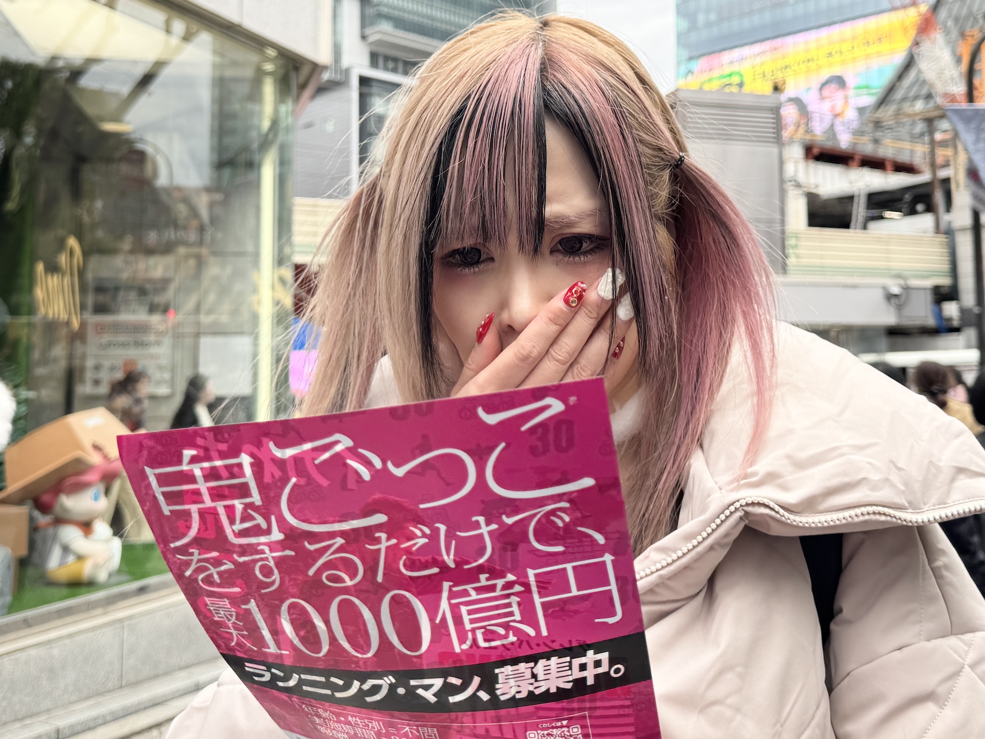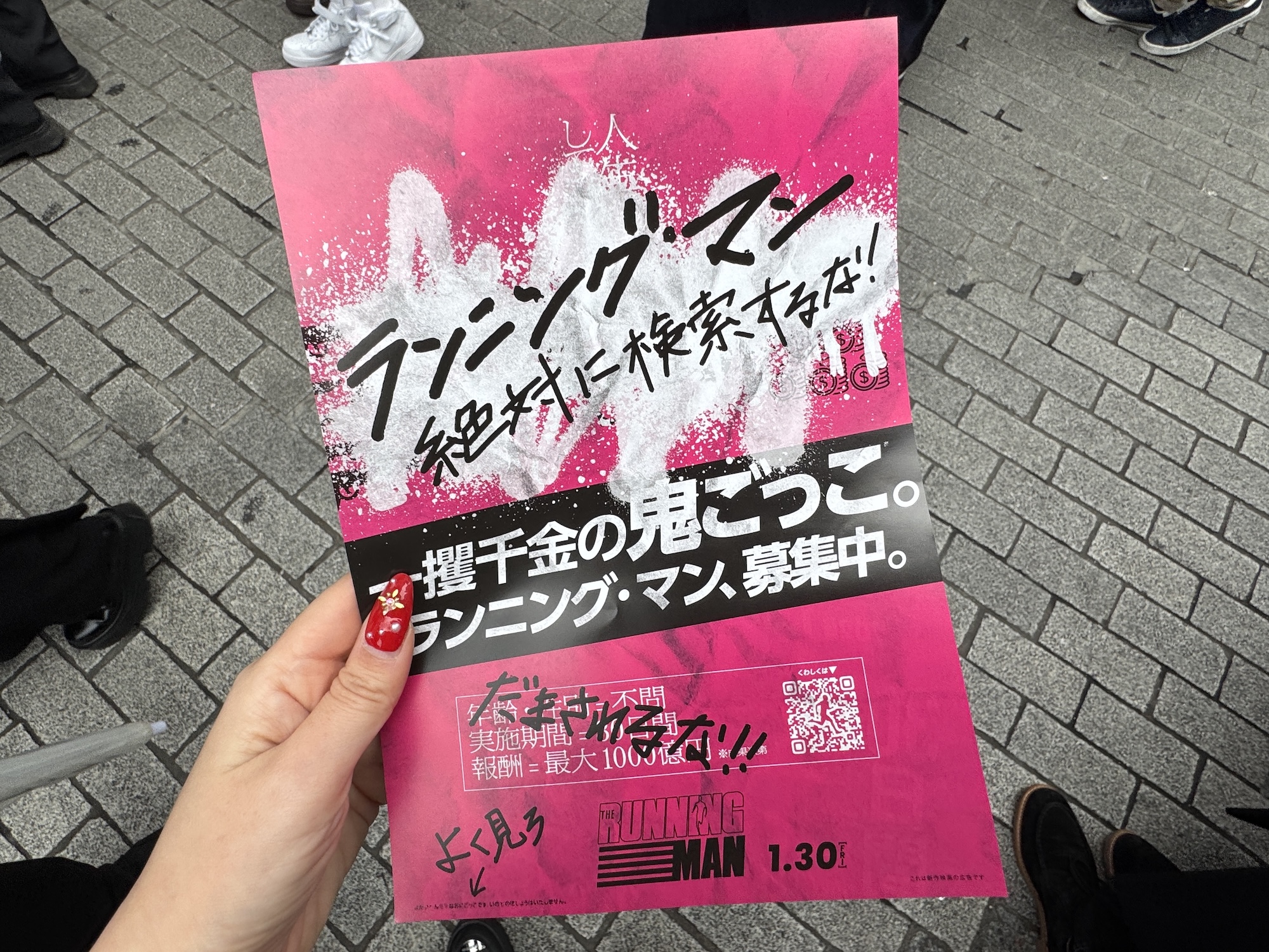 すると……何やら不穏なビラ配りに遭遇。そこには「鬼ごっこをするだけで、最大1000億円」と書かれていた。誰がどう見ても “失敗したら命取られるタイプのデスゲーム” であるが、果たしてルールはどうなっているのだろう?