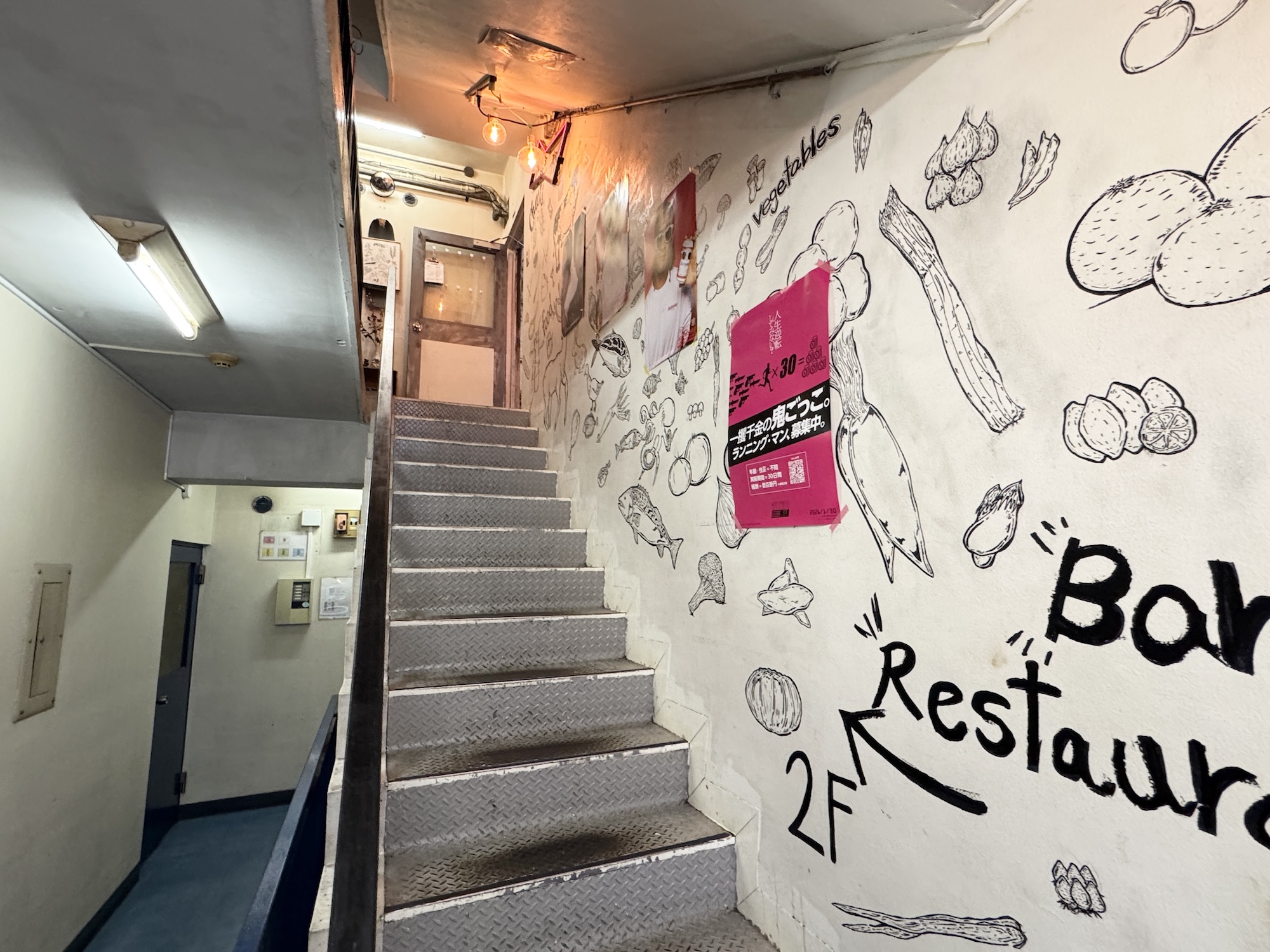 飲食店が並ぶ雑居ビルのさりげない壁面に……