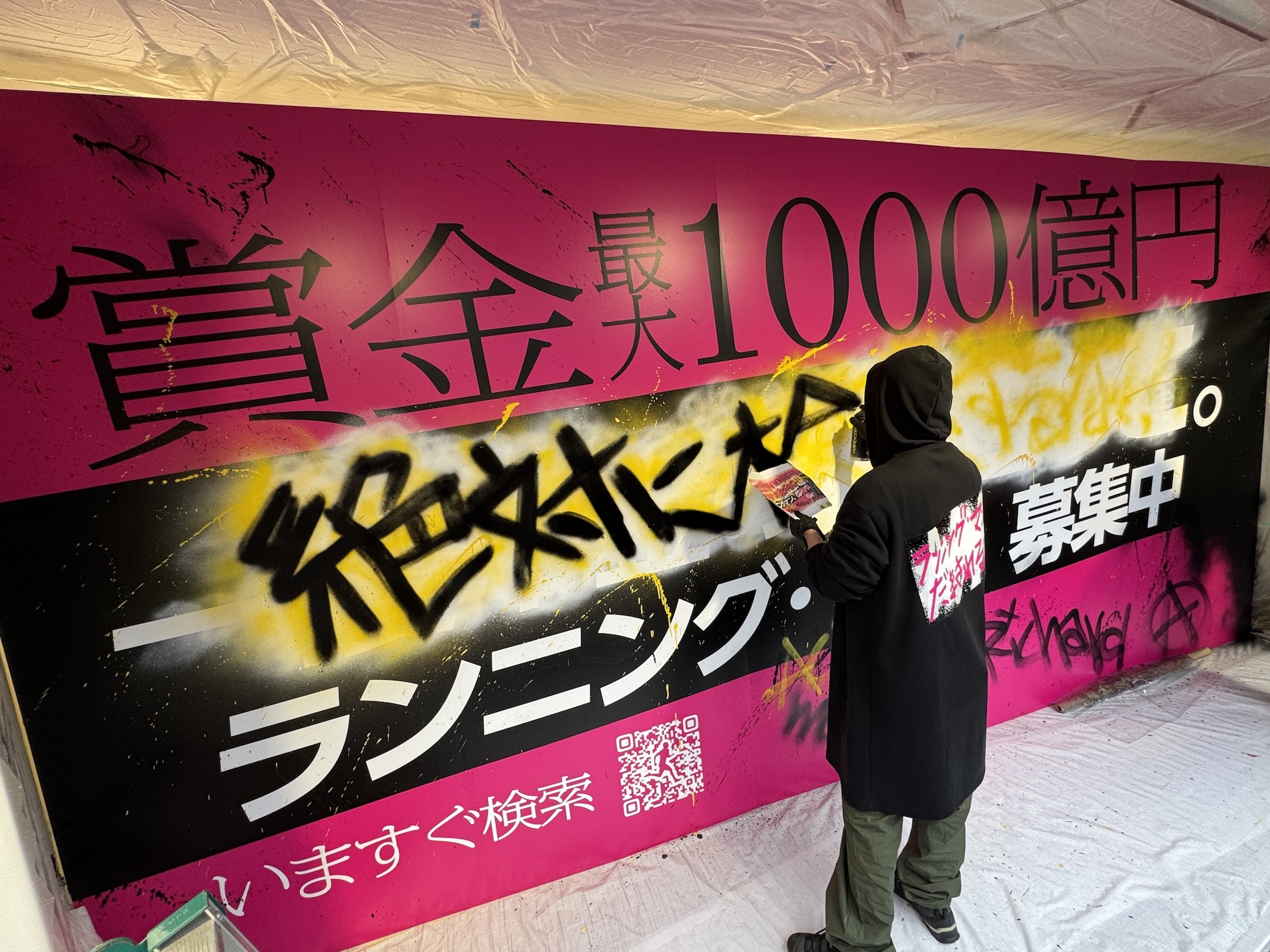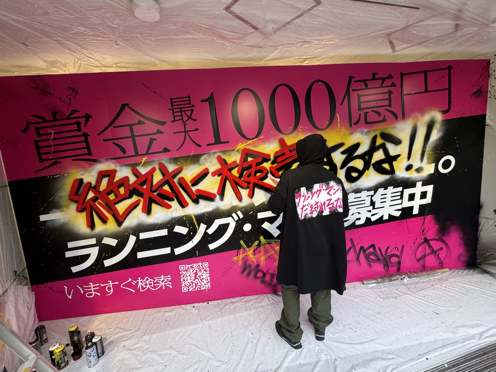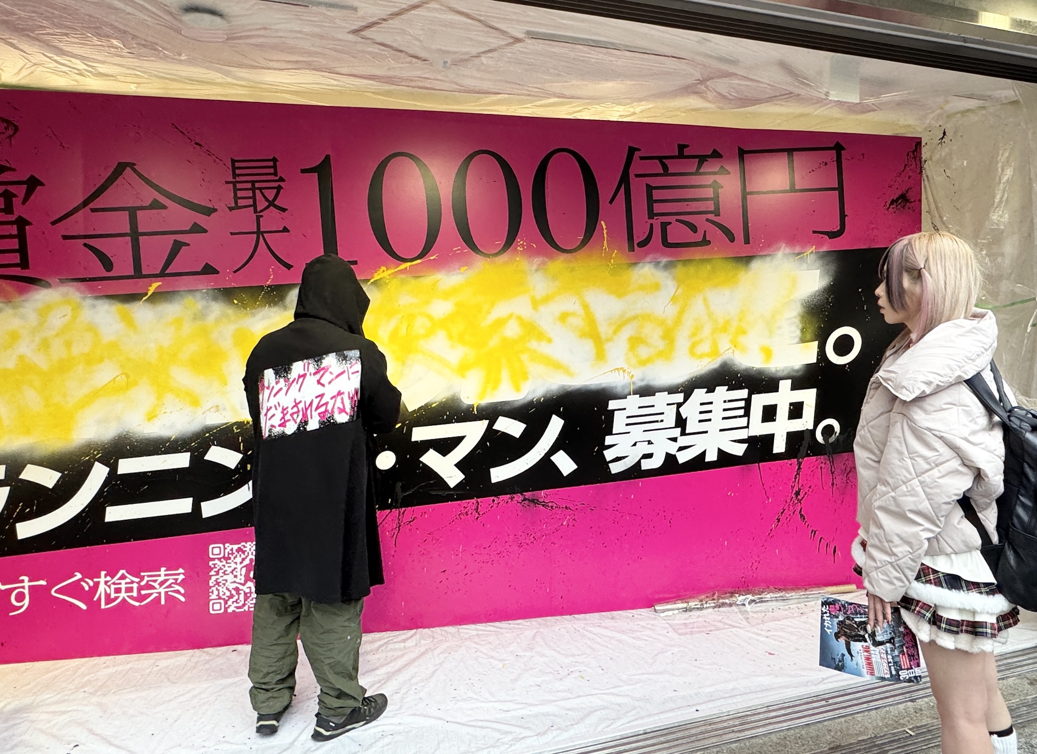【不穏】渋谷で白昼堂々 “怖い人が広告にスプレーで落書きしてる” 事案が発生! デスゲーム映画のプロモーションらしいけど「さすがにやりすぎ」と話題に