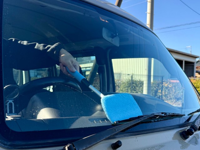 車内掃除で見て見ぬふりをしてしまう場所といえば、内窓だ。フロントガラスの奥は腕を伸ばしてギリギリ届いても角度がキツくて力が入らない。拭いたつもりでもムラが残る。