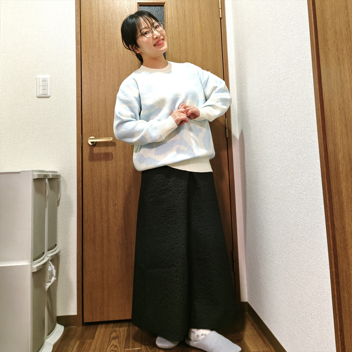 ▼最後はニットとスカート。筆者的にはこちらの組み合わせの方が安心感があって気心地がイイ