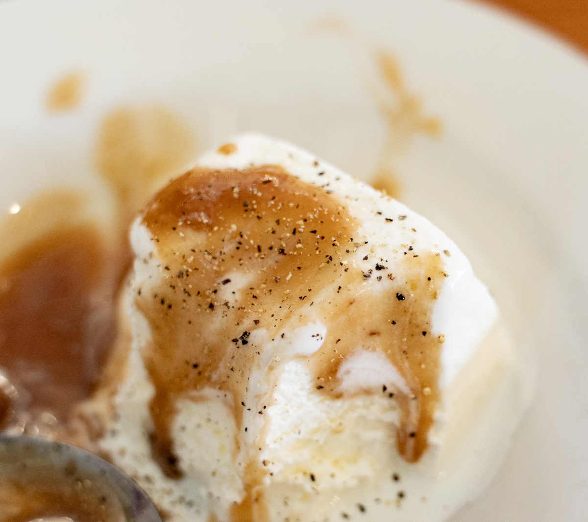 ▼私はジェラートに塩と胡椒をかけて食べるタイプ。マロンソース版とも悪くない感じだった。