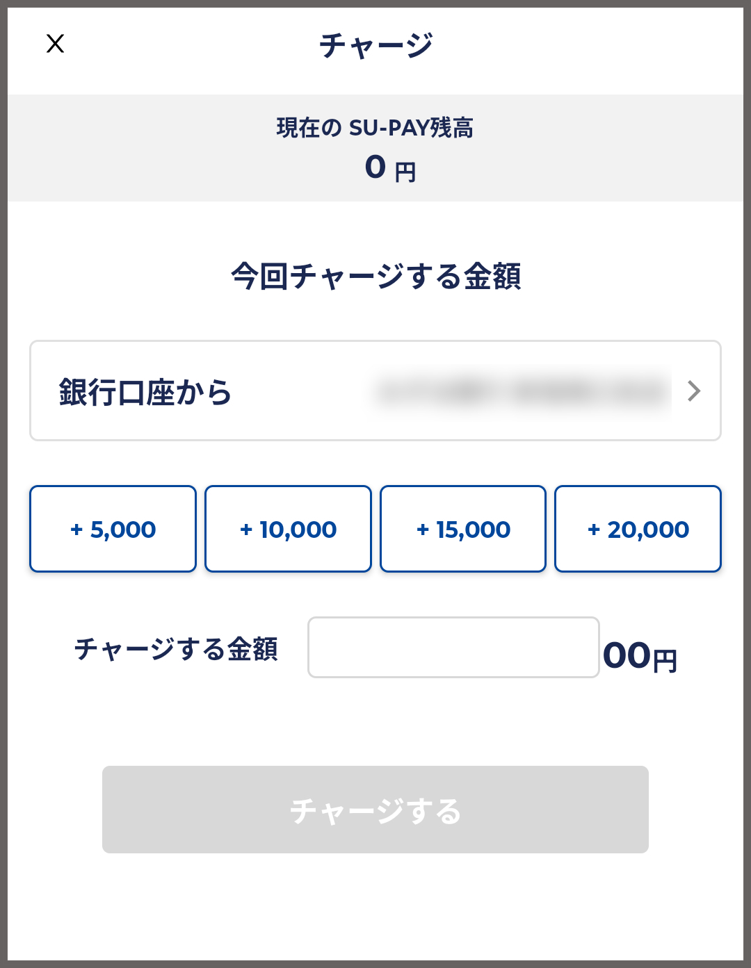 そして口座の紐づけが完了したところで、ようやく金額をチャージできる。1円単位でチャージが可能で、私はためしに3000円ほどチャージしておいた。ここまでがSU-PAYの段取りである。