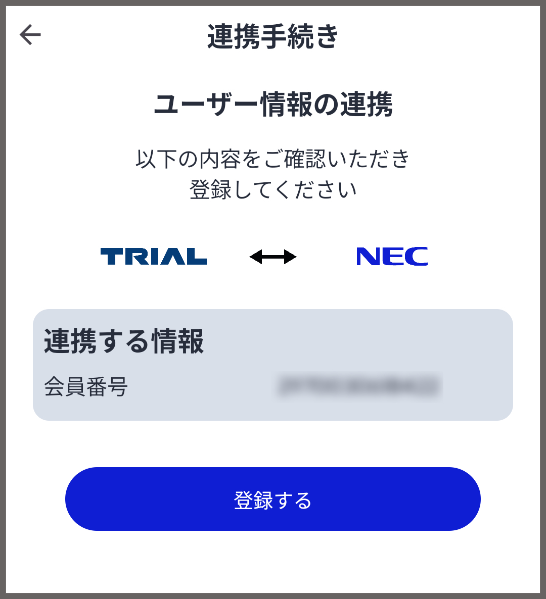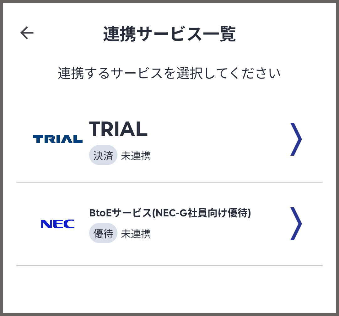 書類の読み取り等を完了すると、連携サービスの選択ができるようになる。そこから「トライアル(決済)」を選択する。