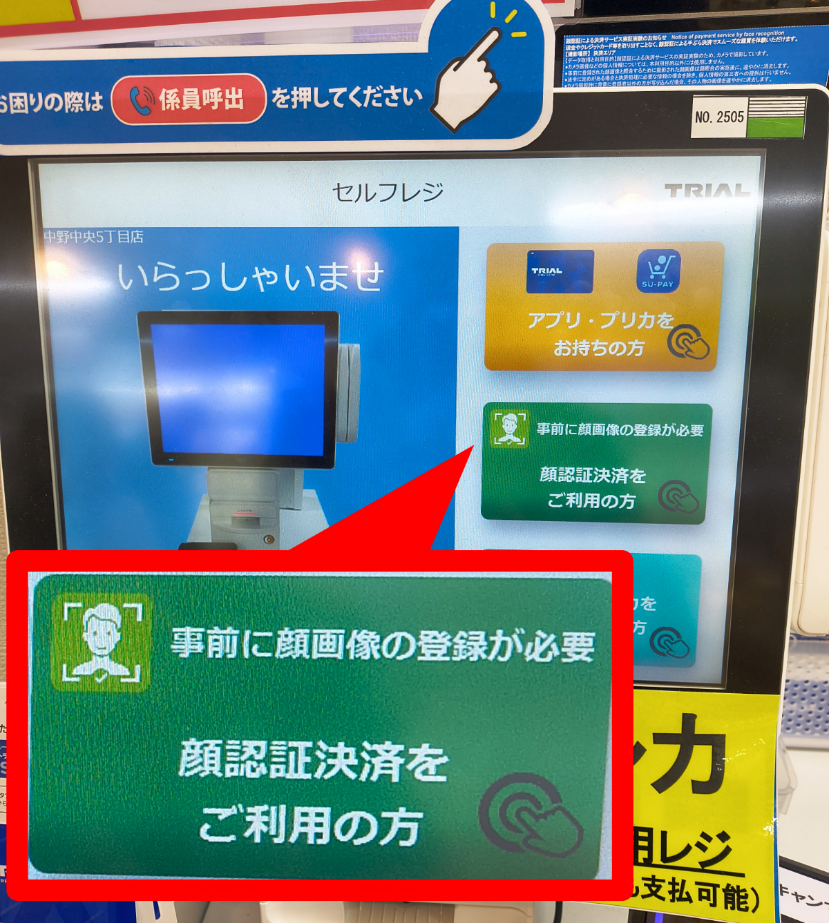 そんなトライアルは、ディスプレイ付きの買い物カート「レジカート」を導入しており、レジの省人化と待ち時間短縮において、テクノロジーを活用しているのだが、さらに買い物の手間を省く仕組みも取り入れている。それが「顔認証決済」だ。