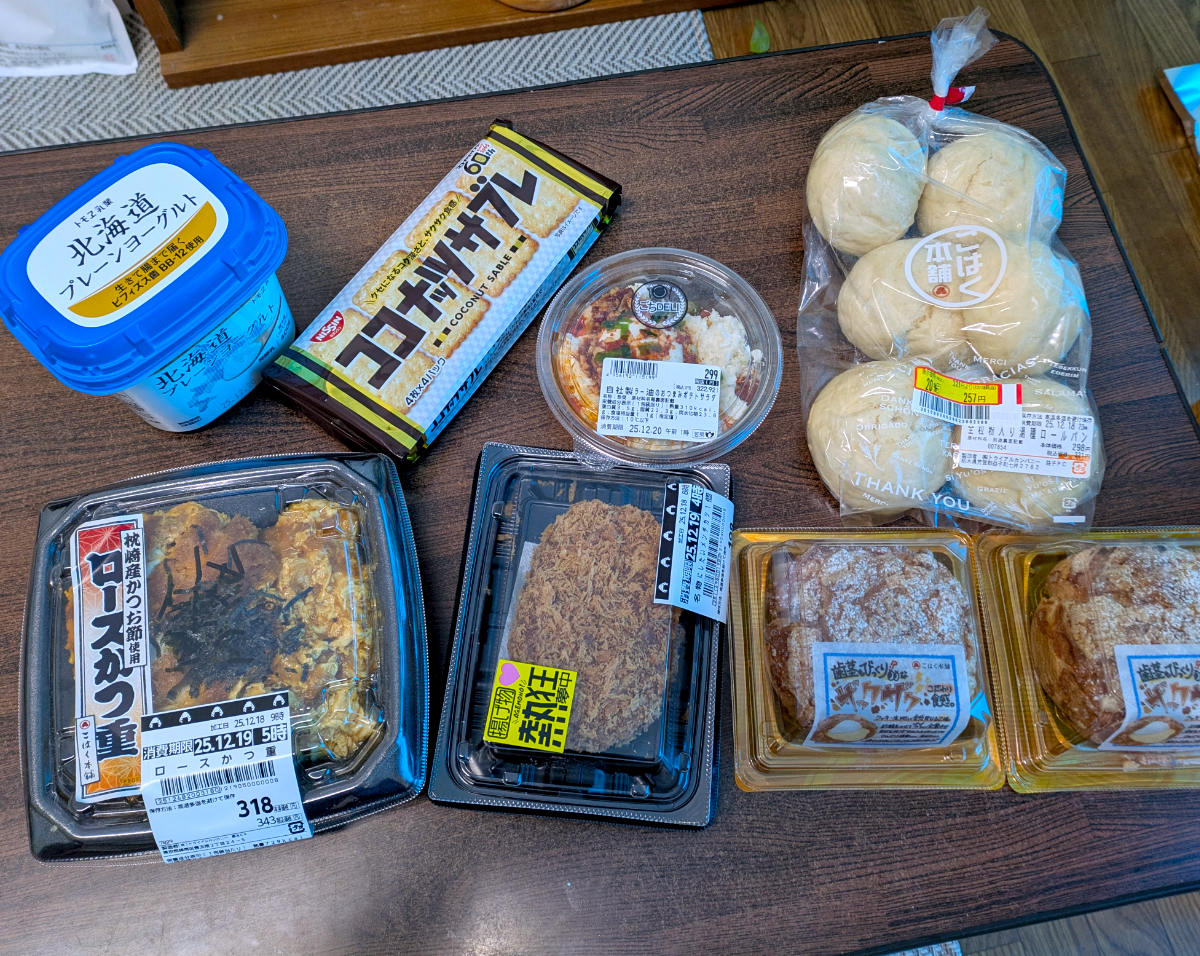 ▼今回購入した品々。トライアルの全粒粉入り湯種ロールパンは美味しいです