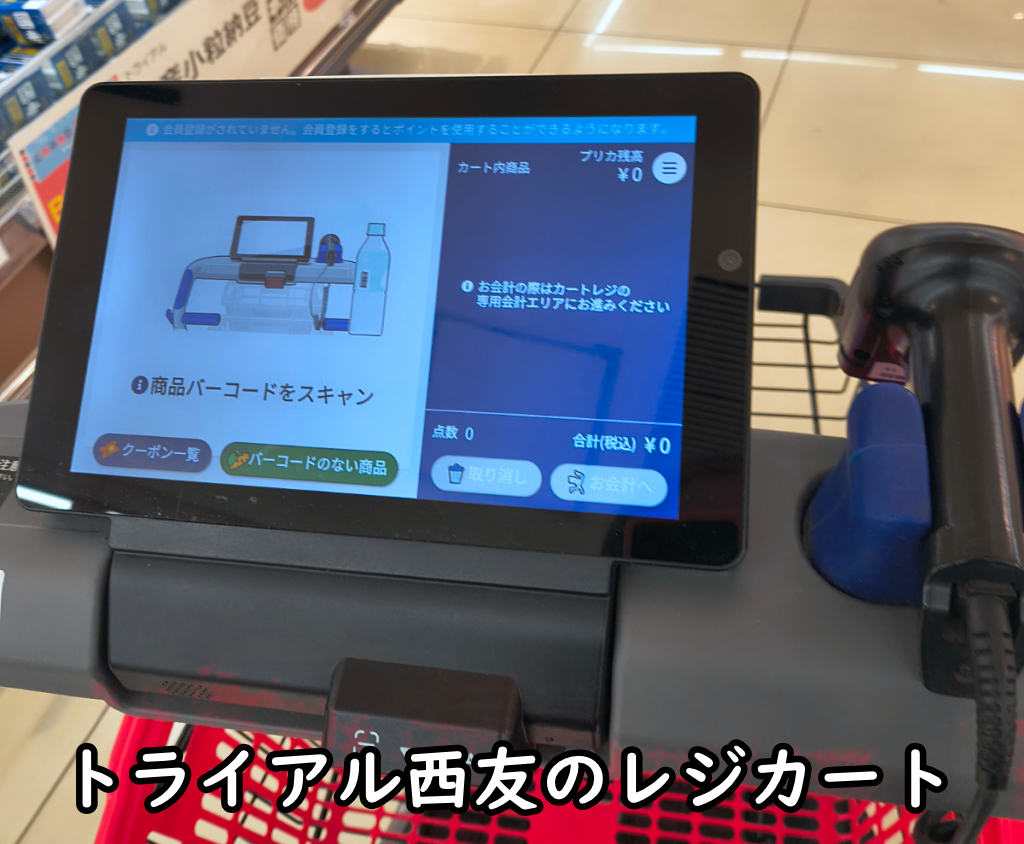 私(佐藤)はレジカートを小平市のトライアル西友で体験済みだ。購入する商品をカゴに入れる際にバーコードを読み取るので、会計時にスキャンする手間が省ける。