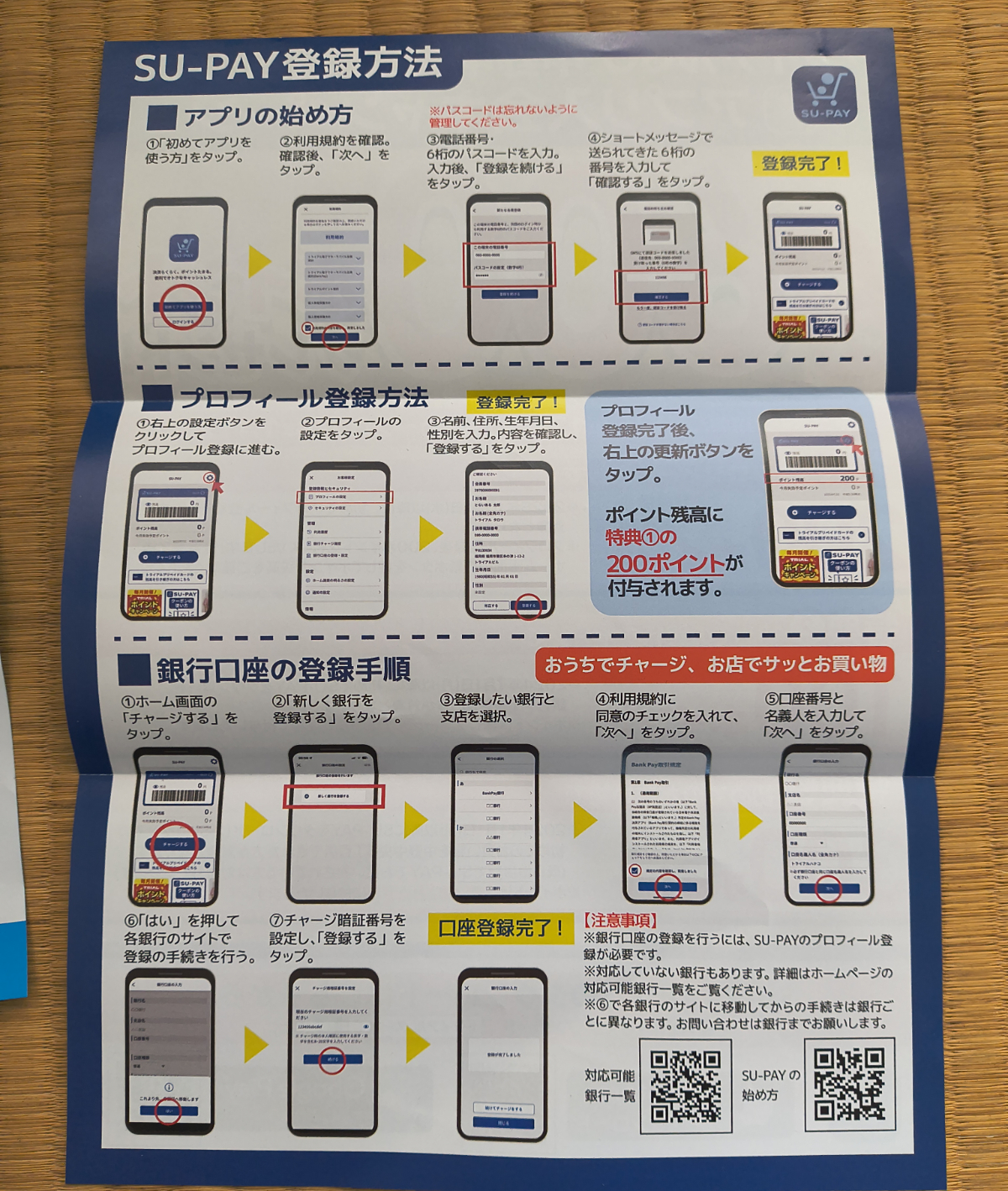 ざっくりとSU-PAYの登録方法を解説しよう。詳細な内容は店舗で配布されているチラシか、SU-PAYの公式ページをご覧頂きたい。