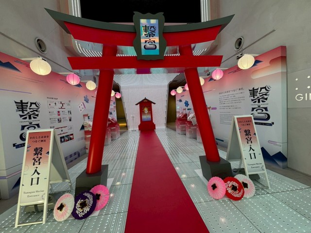 外から見てもひと目でわかる、ネオンカラーと朱色の鳥居の強烈なコントラストが印象的だ。