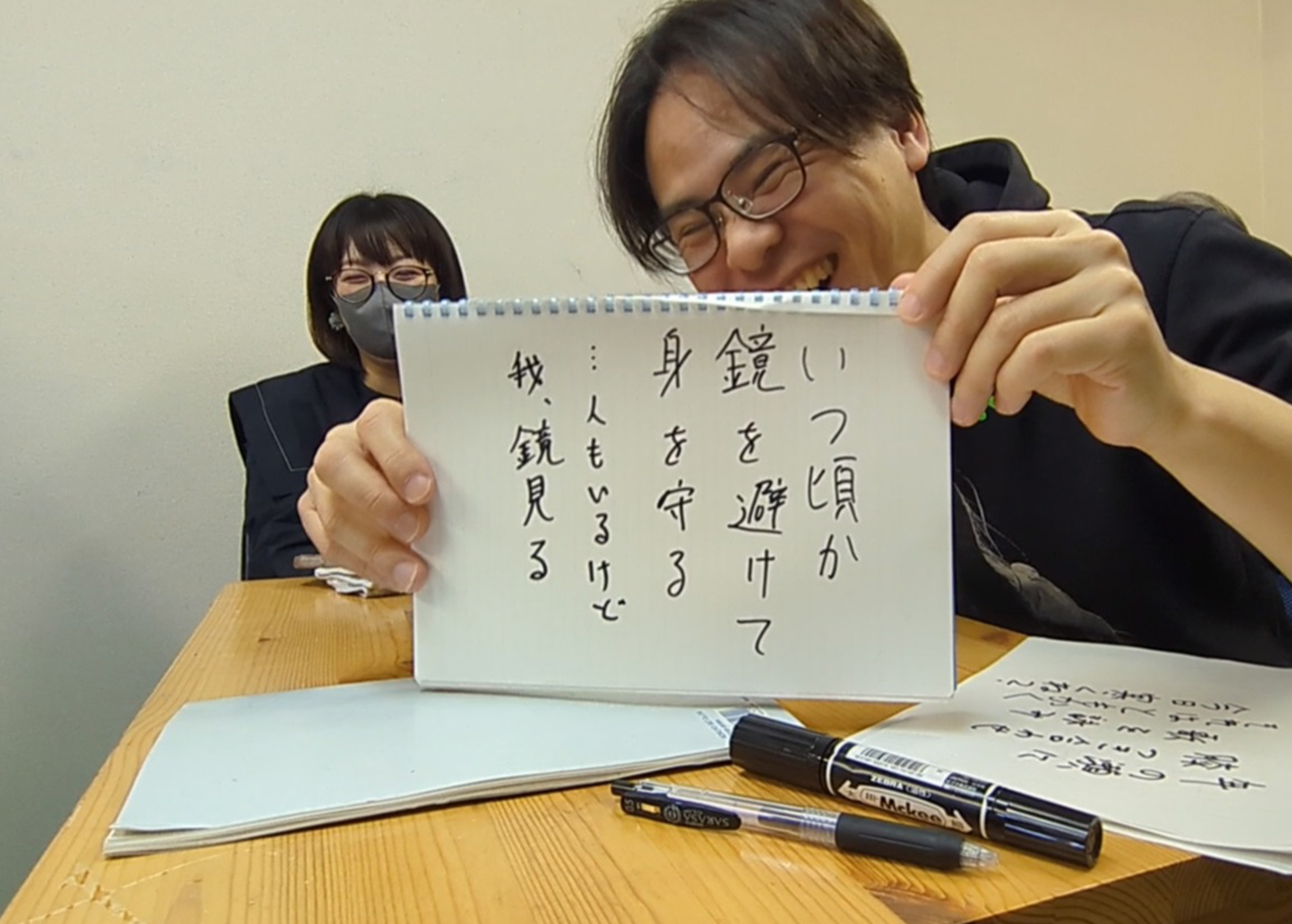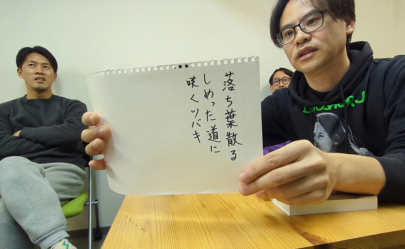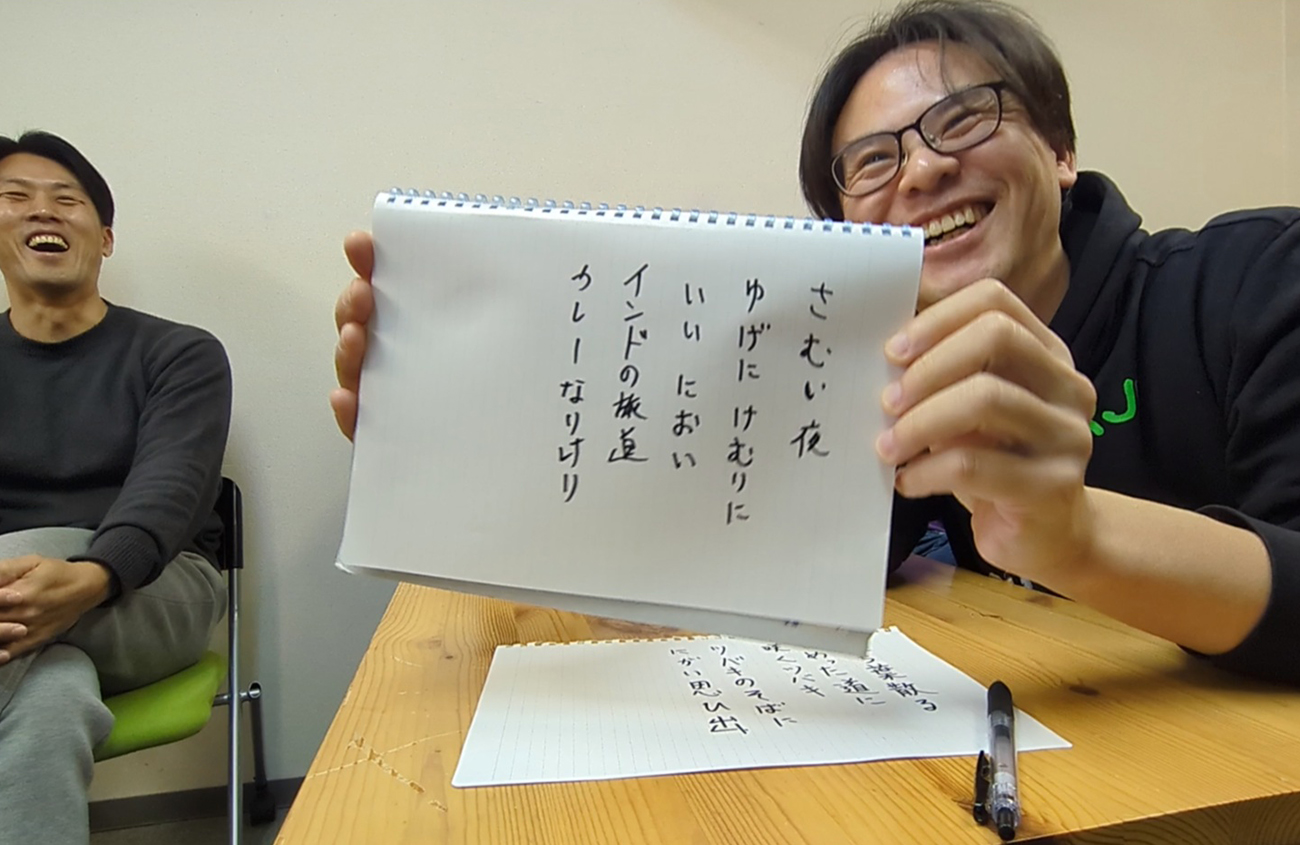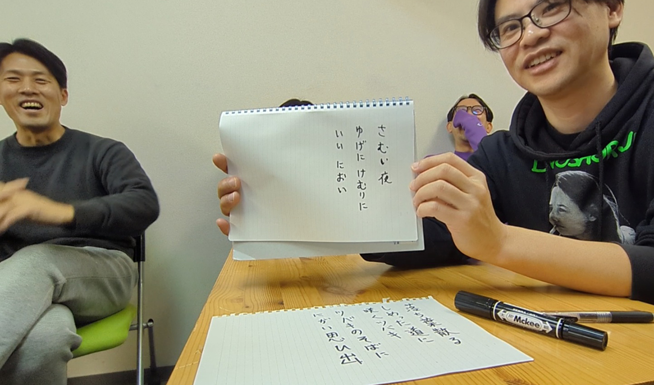 気づけば、上の句の次の人が下の句を詠むだけでなく、思いついた人が「俺も詠んでいい?」と積極的に下の句を発表する流れに。大喜利と考えると、むしろ、下の句が楽しくなる。