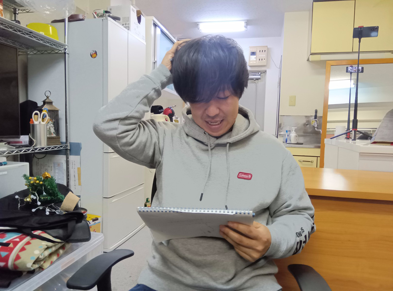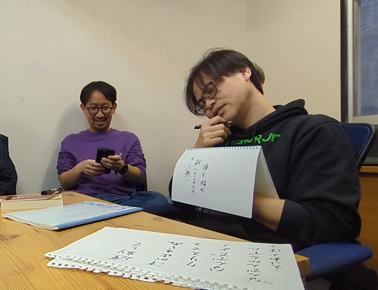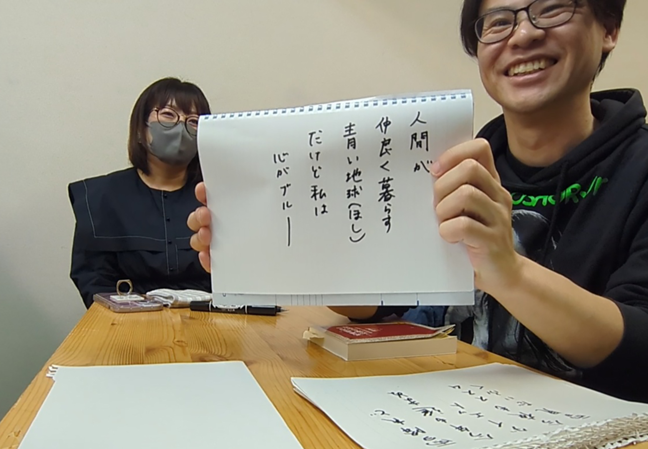 しかし、長考に入ることなく意外とパッと清書に入る和才記者。え、もう? 忘年会だからって流してない? 一発目だから適当にやらないでよ? そんな和才記者が詠んだ続きは……
