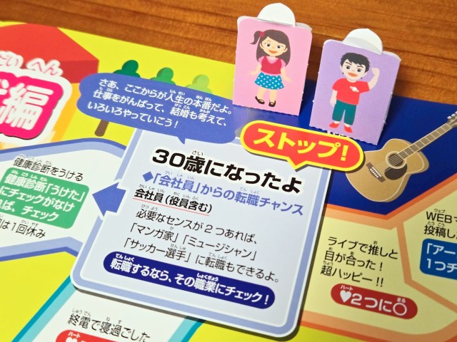 その上には「ここからが人生の本番だ!仕事を頑張って、結婚も考えて、いろいろやっていこう!」という文言。これが30歳というのがすごろくのくせに絶妙にリアルだよな……。