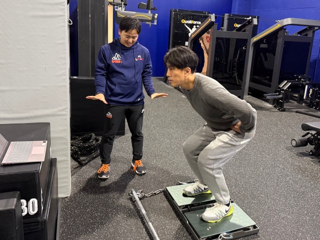 甲子園で活躍した万城目コーチとのセッションでは、私の身体特性を数値でチェックし、強みを伸ばすトレーニングを行った。