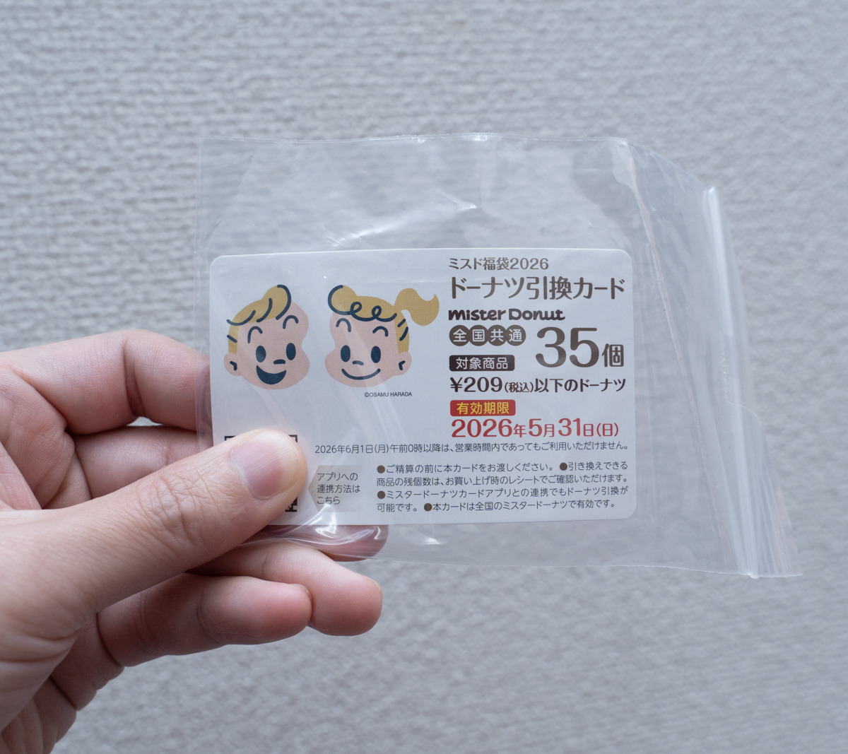 最後はこちら。お約束のドーナツ引き換えカードだ! 今年は209円以下のドーナツが対象で、35個交換できる。
