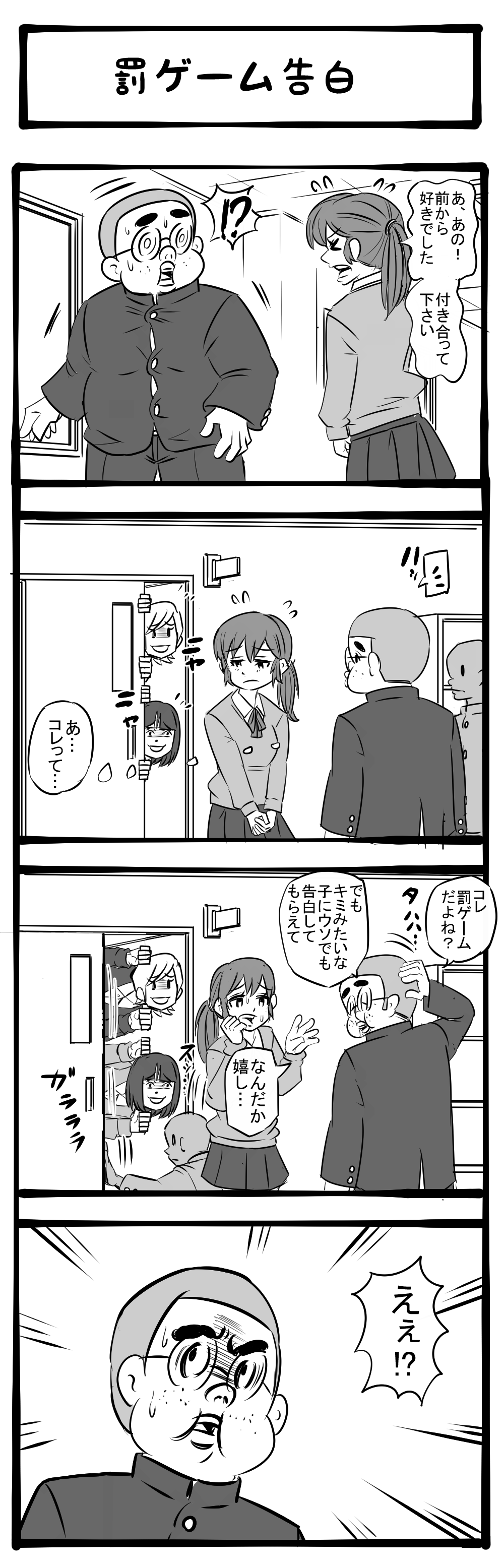 ソレどうなってんの!? 傷つく以上に気になる後ろの人達! 四コマサボタージュBYD第268回「罰ゲーム告白」