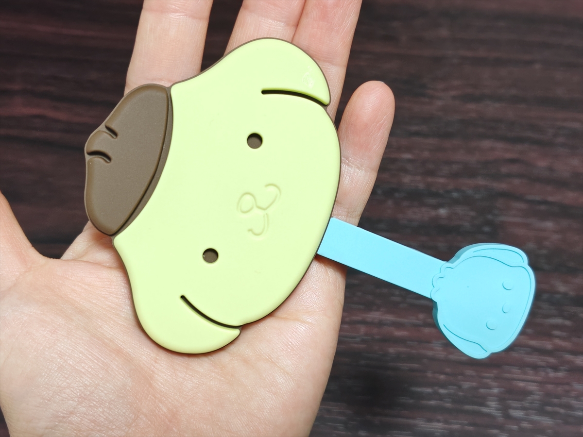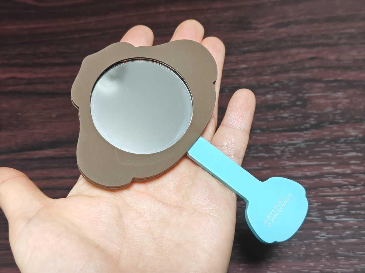 ▼せっかくなので、気になっていた2点を開封してみよう。まずはポムポムプリンのミラー。小さくて自立もさせられないため、実用的とは言い難い……が「それでもまぁいいか」と思える可愛さ。自分で買うほどではないが、プレゼントでもらうと嬉しい系のアイテムだ