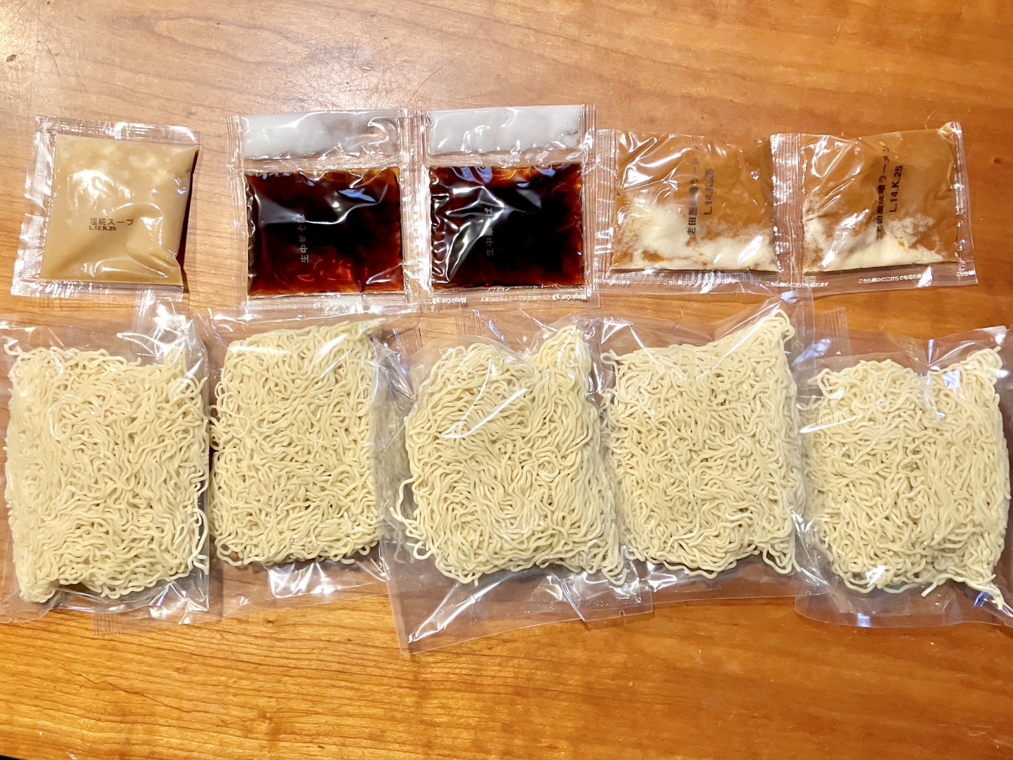 まずは必ず入っているラーメンセットが1箱。商品ページの画像によると、これだけで2000円相当になるそうだ。