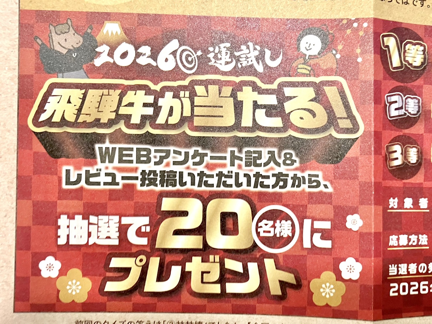ちなみに新春特別企画として、2025年12月1日から2026年1月31日までに福袋を購入した人に抽選で飛騨牛そのものや飛騨牛を使ったグルメが当たるキャンペーンを開催しているようだ。