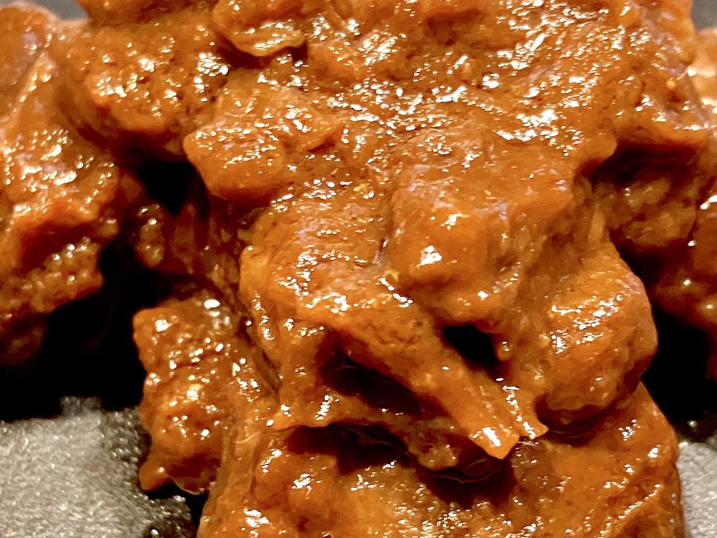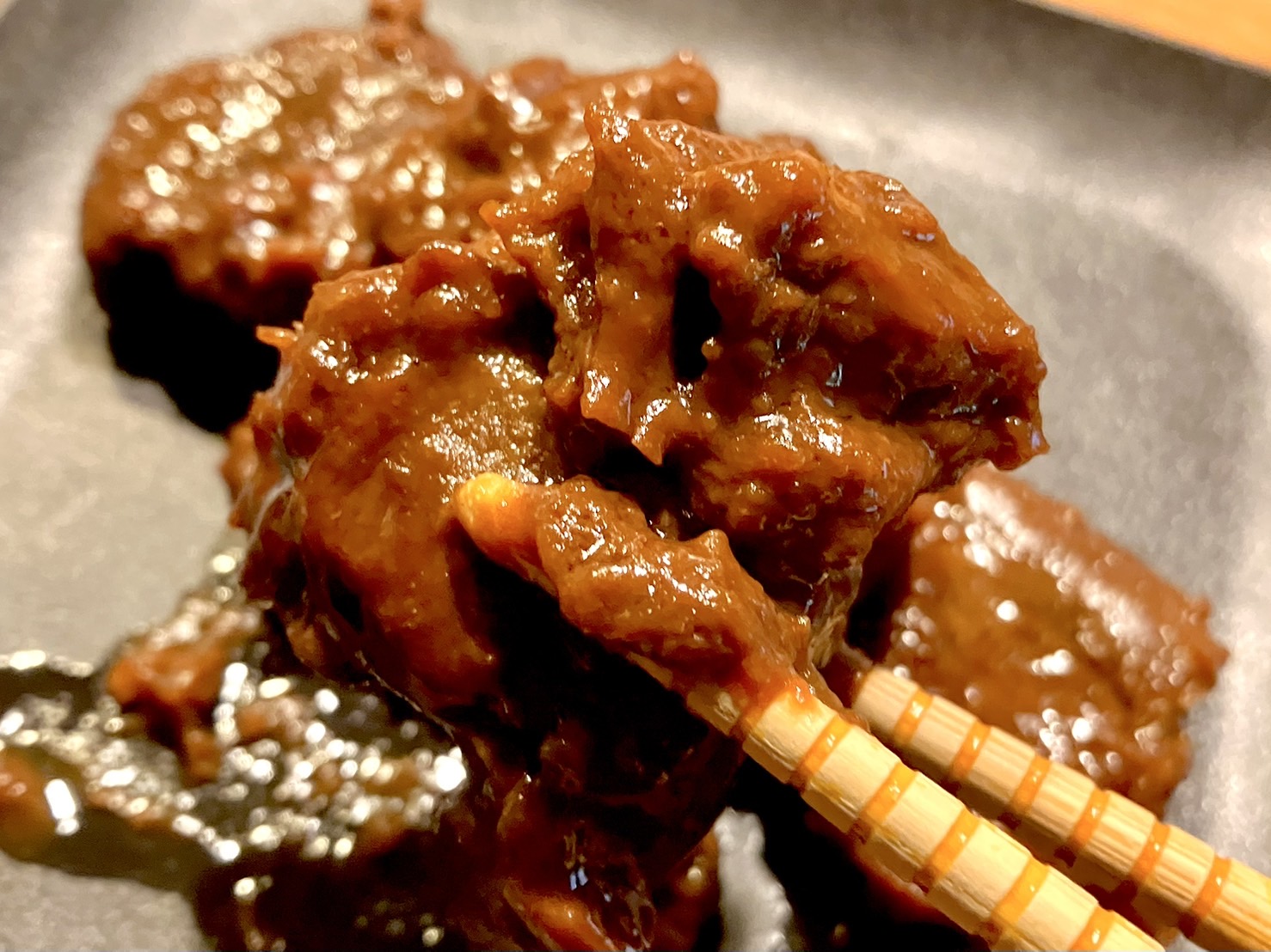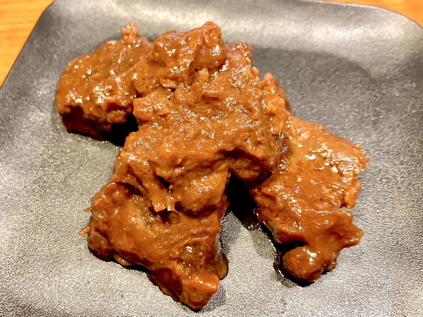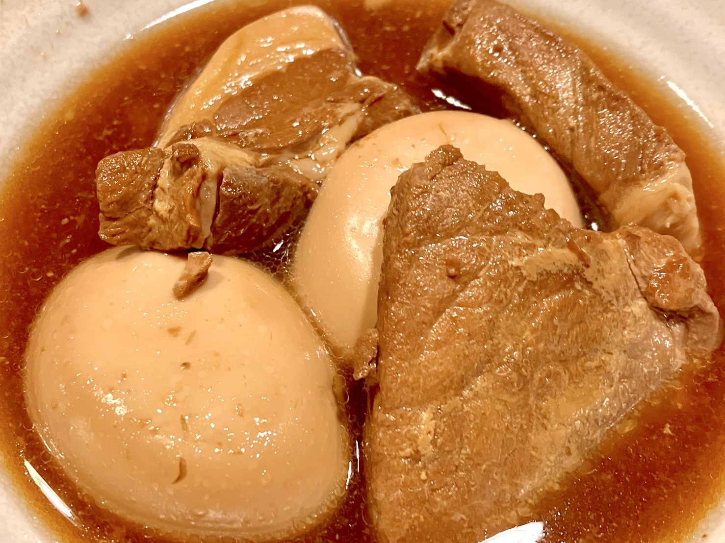 一点「あれ?」と思ったのは、角煮にしては肉質がちょっと固めだったこと。味は間違いなく豚肉なんだけど、部位の問題なのかツナの塊を食べてるみたいな食感だった。
