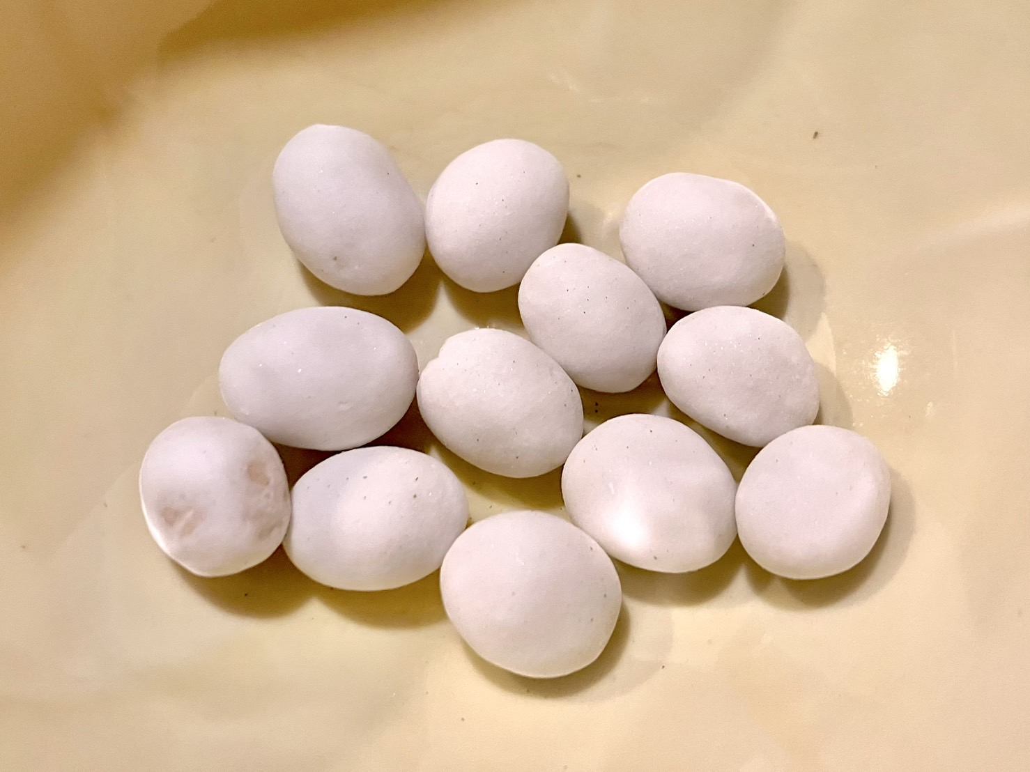 表面が真っ白な砂糖の衣でコーティングされたカリカリの大豆だ。素朴だけど、甘さと香ばしさのバランスが絶妙で癖になる。