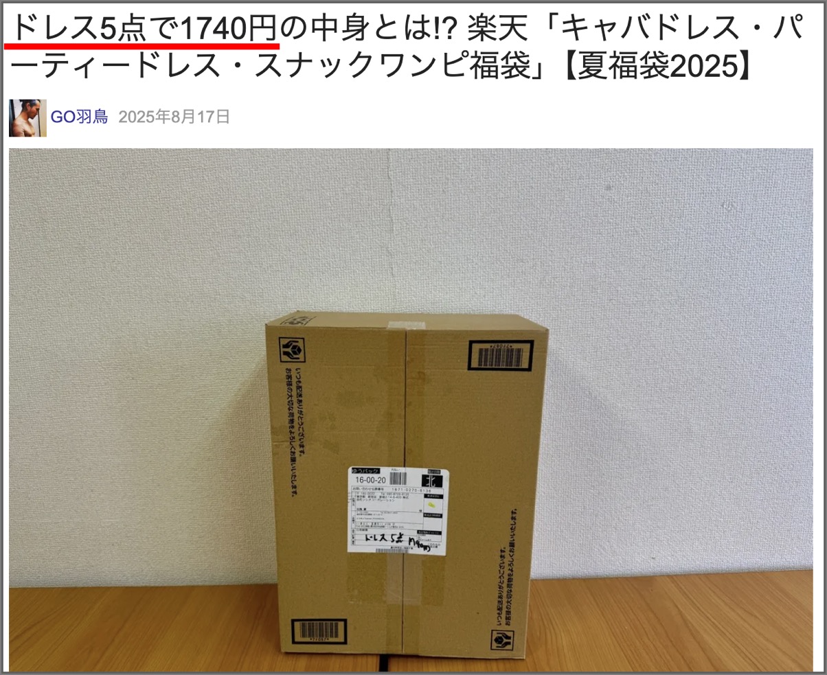 【今回もヤバイ】楽天の『キャバクラ福袋』が下品すぎて笑った / キャバドレス3着入りで3278円ポッキリ