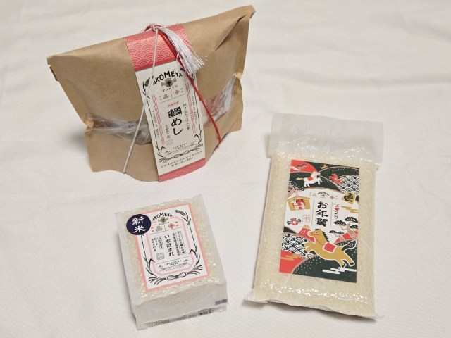 鯛めしは2合用なんだけど、これで作ってくださいと言わんばかりに2種類のお米も入っているな。量は少ないけど、このご時世だとお米はありがたいよね。