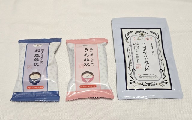 その他にはフリーズドライタイプの雑炊が2種に、何の料理にも使えそうな「アコメヤの万能出汁」、