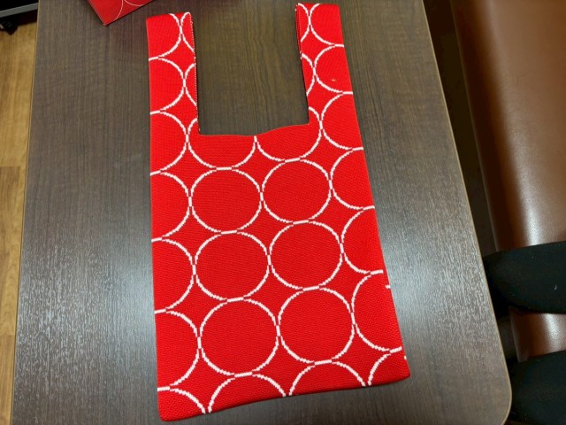 ▼ニットバッグの裏面はこんな感じ。同日に早速これを使っている人を見かけた。