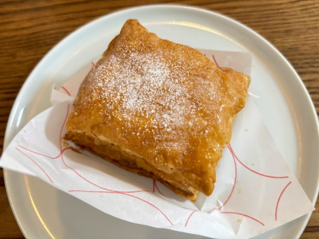 普段はアップルパイを積極的に選ぶタイプではない私だが、これは非常においしい。甘さもちょうどよく、油断すると何個でもいけそうなので、食べ過ぎないよう自制が必要だ。