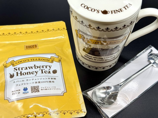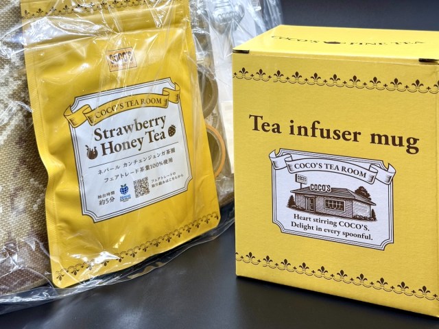 ハチミツみたいな黄色いパッケージのストロベリーハニーティーは、福袋限定品だそう。ゼンショーグループ全体を通して、フェアトレードに強いこだわりあり。