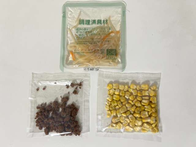 東日本編には「シャキシャキもやし」「スイートコーン」「あまから肉そぼろ」の3種類、