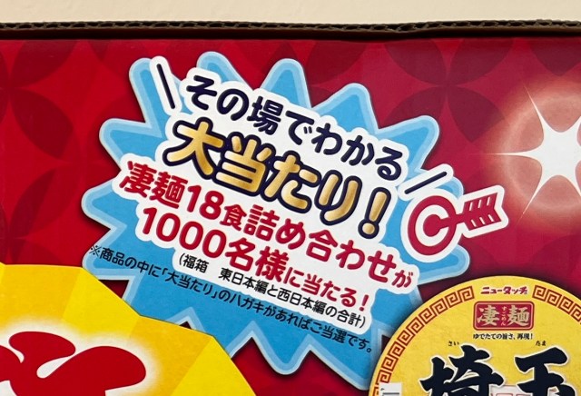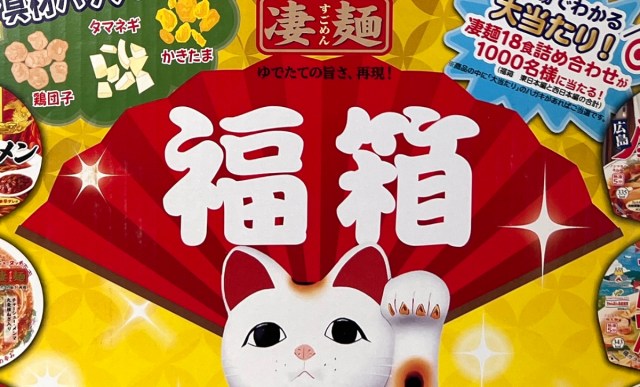 しかし非売品の「マシマシ具材パック」がついてくることを考えると、レアであることは間違い。さらに、「凄麺18食詰め合わせ」が当たる大当たりハガキが入った「当たり箱」も存在するとのこと。年末年始の運試しとしても楽しめるわけだ。