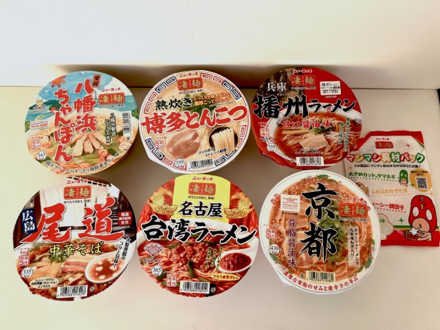 の6種類が入っている。名古屋から九州まで、西日本の個性的なラーメンが勢揃いだ。