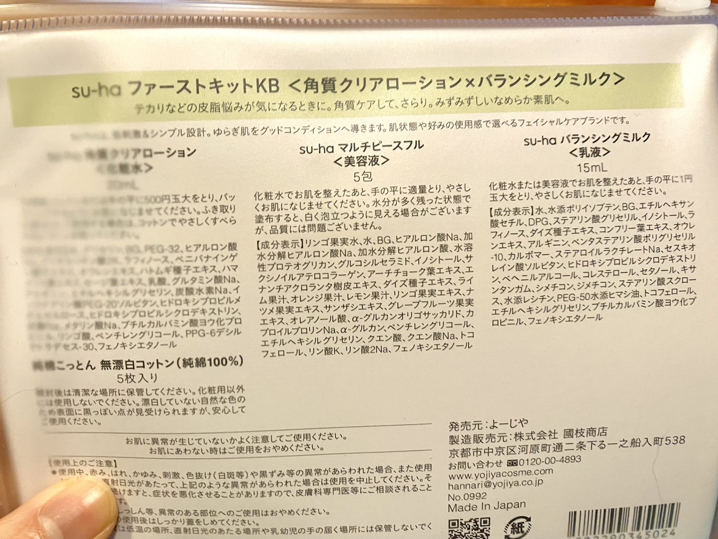 最後に「su-ha」のスキンケア用品セットである「su-haファーストキット」。よーじやの福袋を買うのは今回で4回目だけど、これが届いたのは初めてだった。