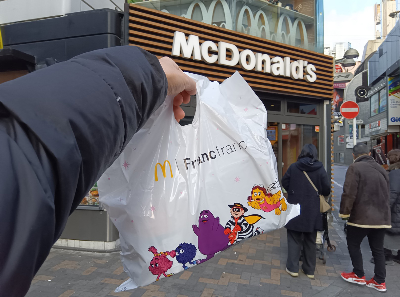 例年、有名ブランドとコラボしているマクドナルド福袋。2026年はFrancfranc(フランフラン)とのコラボで、受け取ってみると外袋からすでに可愛い。