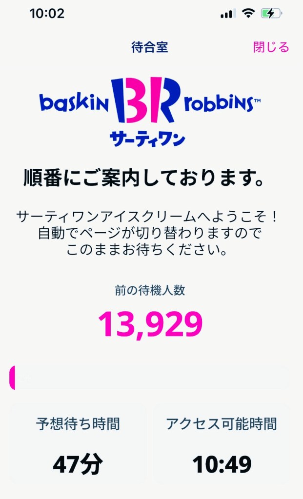 サーティワンの福袋は毎年、大人気だ。最近はネットにて事前予約できるのだが、販売開始時刻ちょうどにログインすると既に何千人……いや、〇万人待ちだなんてことがザラ。みんなアイス大好きね!
