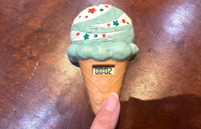 しかしその点は、さすが世界のサーティワン。かなり力を込めたオリジナルグッズを毎年、入れてくれている。今年(2026)の目玉は、なんといってもオリジナルキッチンタイマーだ。ホッピンシャワー風のアイスの、コーン部分にタイマーが付いているのだ。可愛いっ……!!