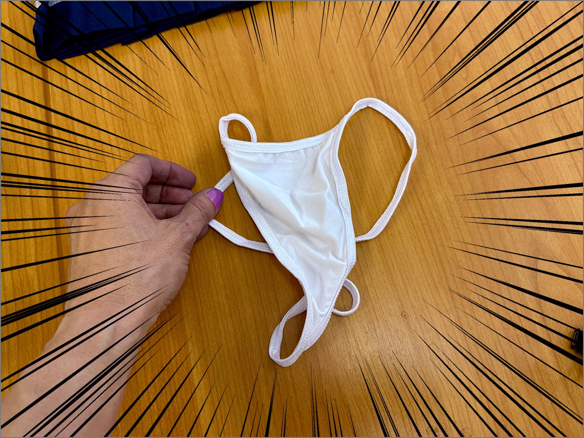 とにかくサイズがパッツンパッツンに小さくて、物理的にも精神的にも正直キツい! ある意味、ヒモパンを使うシチュエーションによっては、それが良いところなのかもしれないけども……。