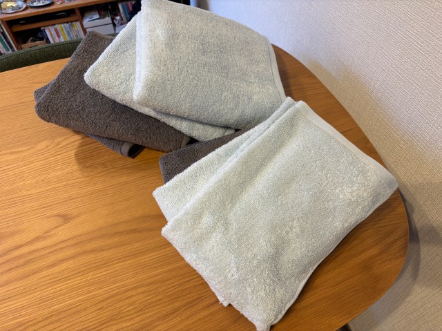匂いもないし、シャキっとしてる。そんなわけで、バスタオルなど大きいタオル類だけちょこちょこウチノに買い替えてたってわけです。