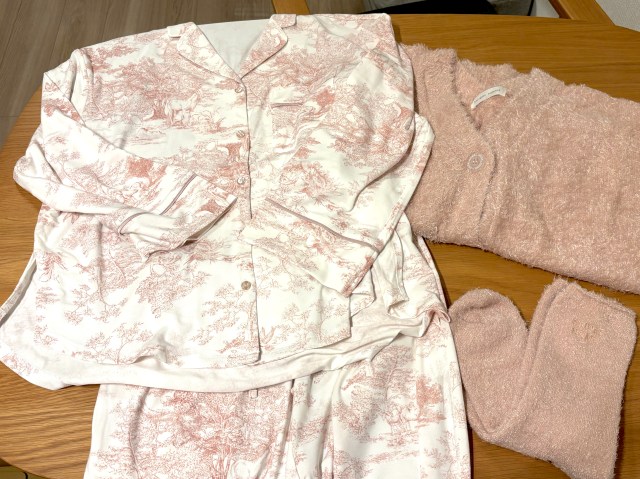 去年(2025年)のピンクのパジャマ&カーディガンとあまりにも似すぎじゃない???