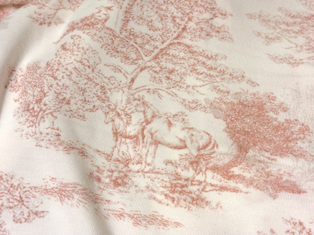 2026年ラッキーカラーは赤とオレンジらしく、今年はSNIDEL HOMEらしく、淡く少しくすんだピンクとラベンダーをテーマに仕上げ、午年にちなみ馬のモチーフを取り入れたトワル・ド・ジュイ柄をプリントした……と事前に説明があった。