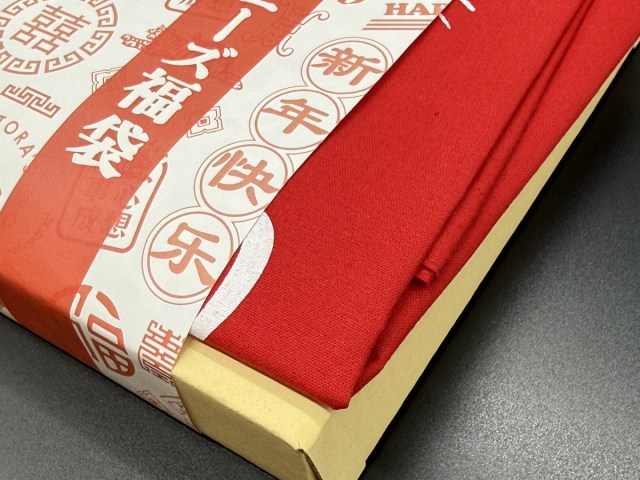 購入方法は12月中の電話予約のほか、店頭でも数量限定で販売している。手渡されたのは菓子折のような薄いシルエットの箱。のしまで付いて、大変に趣(おもむき)があるが、福袋の形状としては珍しい。