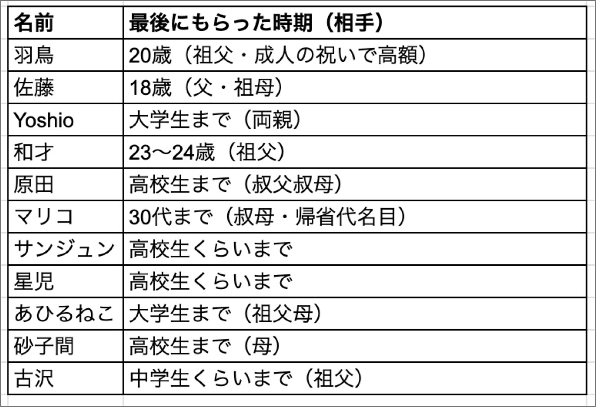 【1】自分が最後にもらったのはいつ?「高校卒業」が境界線