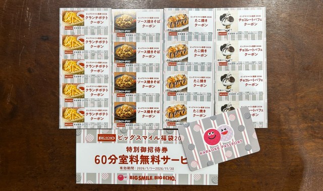 昨年(2025)もビッグエコーの福袋を購入した記者。年間カラオケパスポートと60分室料無料サービスは、継続されている。しかもカラオケパスポートに至っては何度でも使えるという、神仕様。こちらを使って2026年もカラオケ、めっちゃ行きます。
